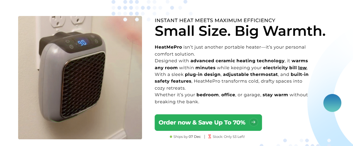 In summary, HeatMe Pro UK offers a modern approach to indoor heating that aligns with the needs of todayβs households. Its compact size, portability, ease of use, and ability to provide focused warmth make it a valuable addition to any UK home. For those seeking everyday comfort during colder months, HeatMe Pro delivers a simple and reliable solution designed to support a warm and welcoming indoor environment.